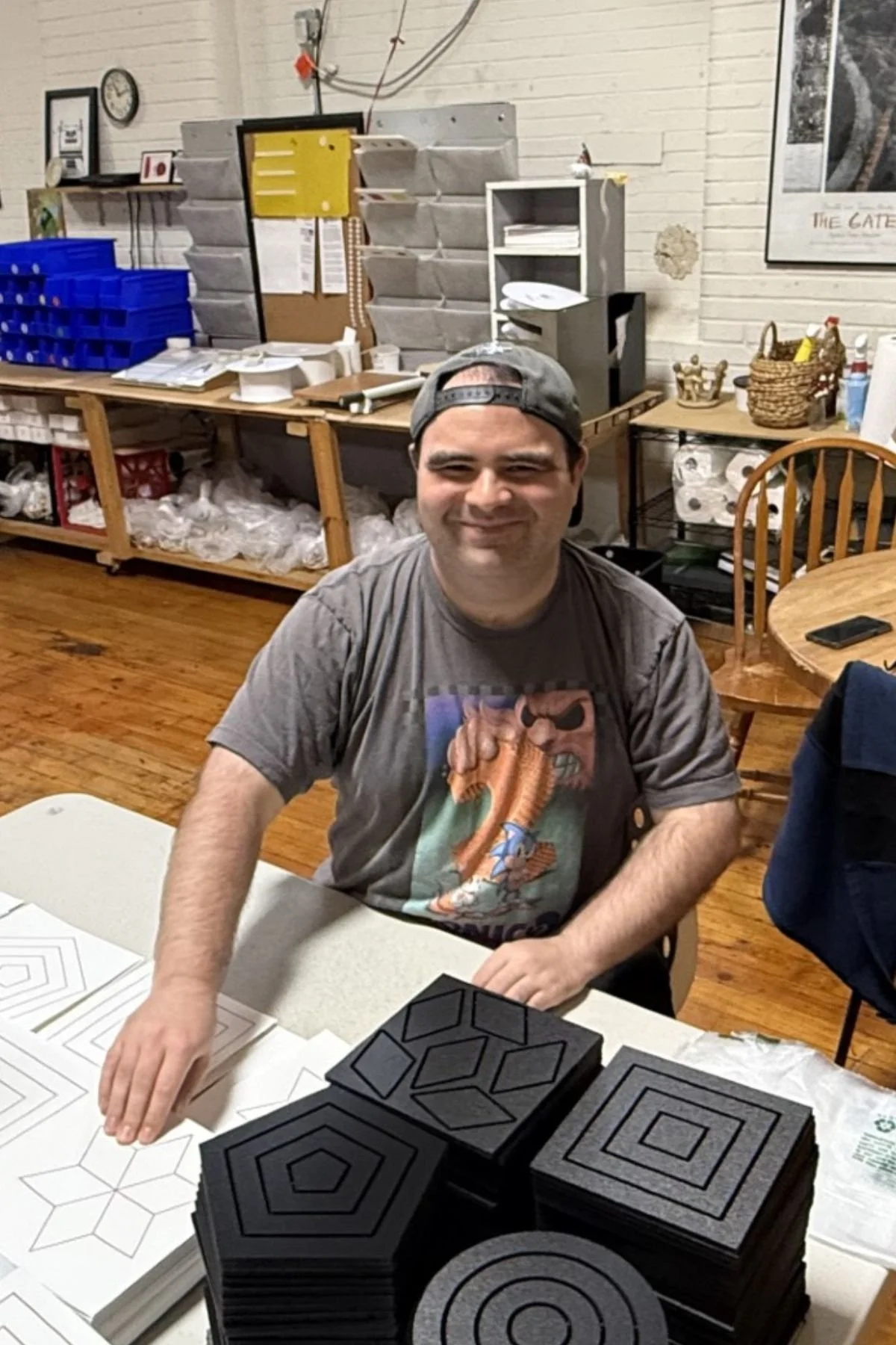 B (left) is the younger brother of A (right), who worked at Centering on Children, Inc. before him. B is adept at running the shopbot machine that cuts our custom Shoebox lids every week. B is deep into music, especially hip-hop and experimental varieties, and can be found playing here in Asheville regularly. Get a sample of his music here: www.soundcloud.com/manukaru.
